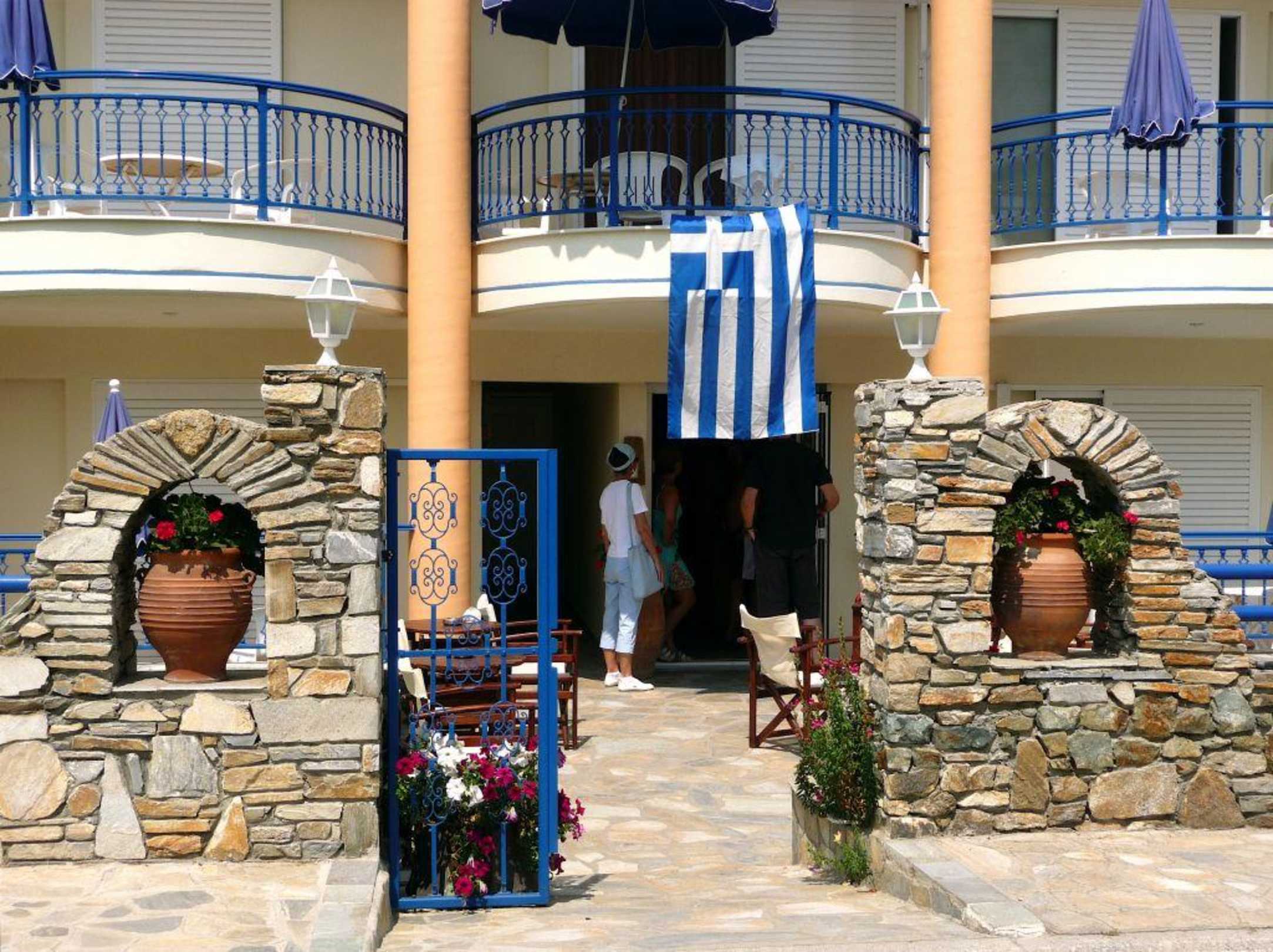 Eingang und RezeptionZur Fußball-Europameisterschaft 2008 wurde natürlich die griechische Nationalflagge präsentiert ...