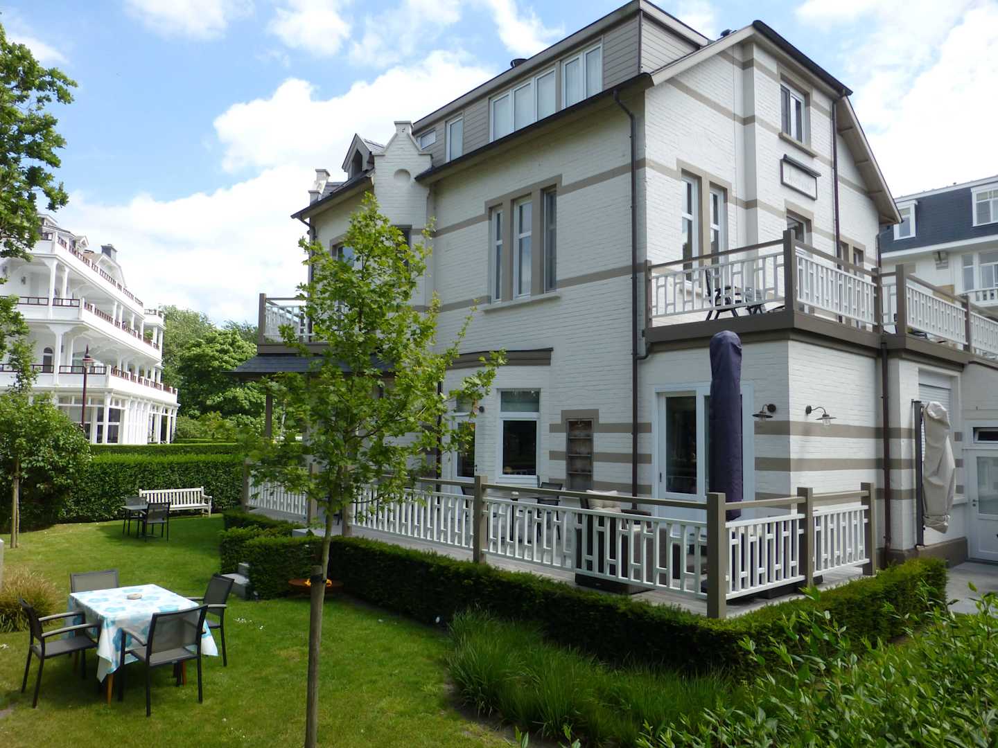 Das Hotel mit Garten von der Strasse aus