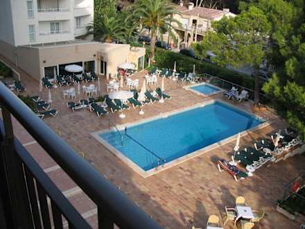 Blick vom Balkon auf den PoolDas Bild wurde aufgenommen im Jahre 2005. Es zeigt den Poolbereich des Hotels Leman an der Playa de Palma.