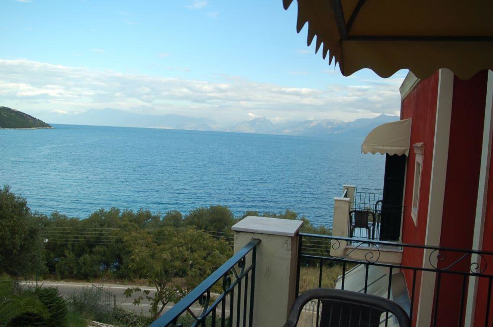 Eine phantastische Aussicht vom Balkon des Hotel Apraos Bay mit Blick bis nach Albanien