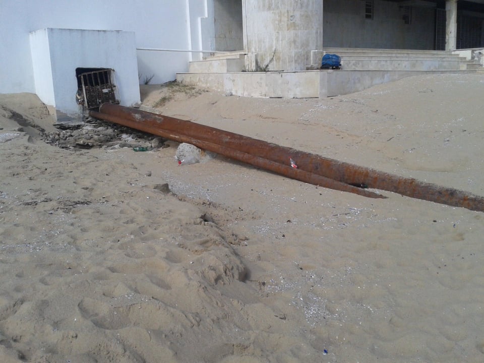 Abwasserrohr quer über Strand