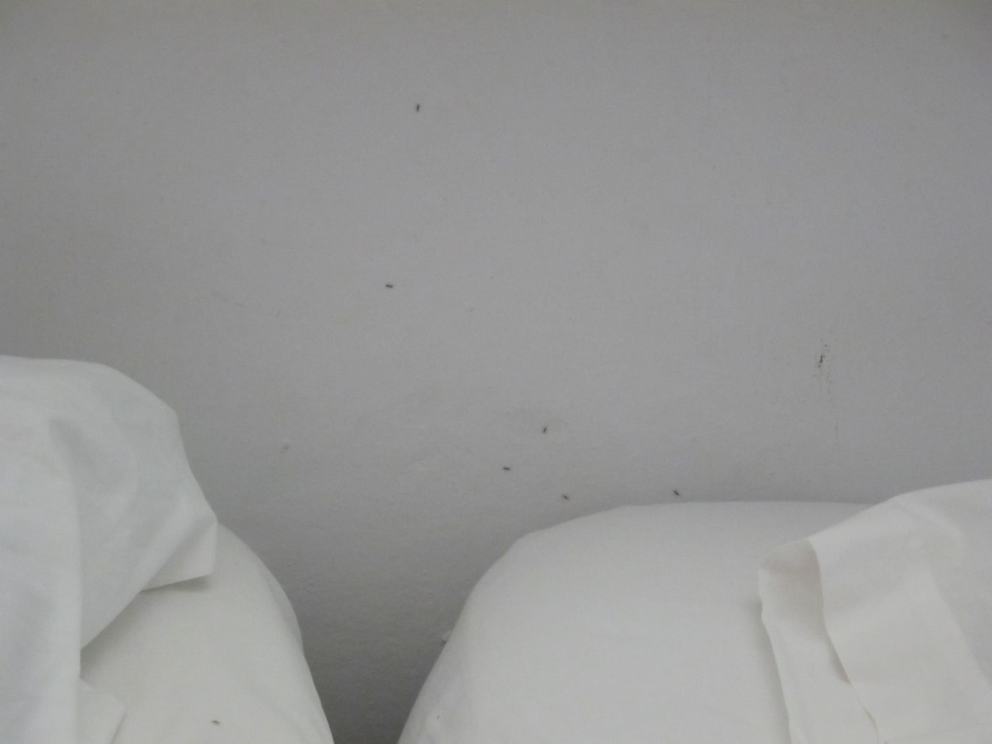 Ameisen im ZimmerAmeisenplage im Zimmer - man sieht die Wand am Kopfende der Betten, wo die Ameisen rumkrabbeln.