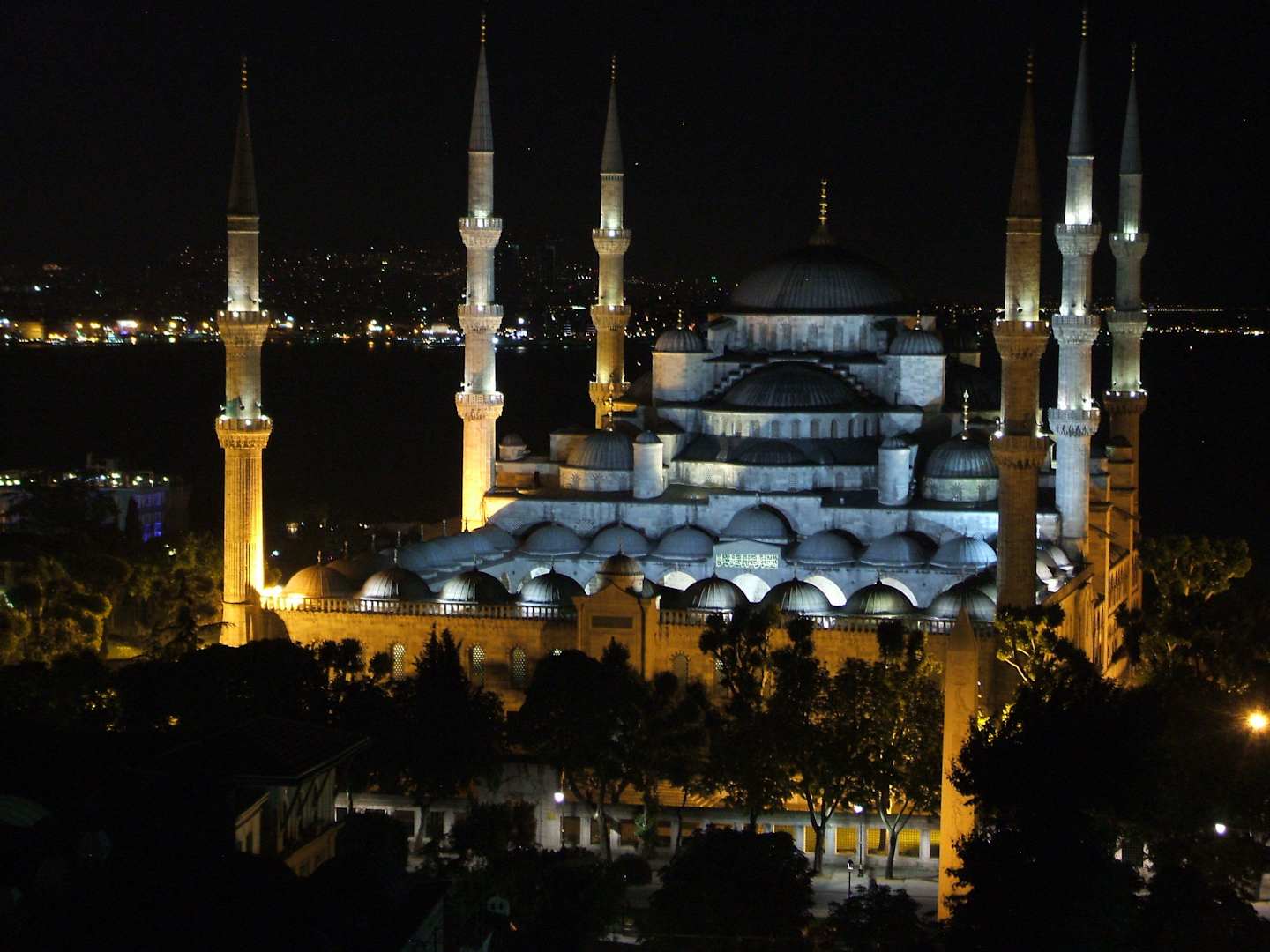 Blaue Moschee bei Nacht
