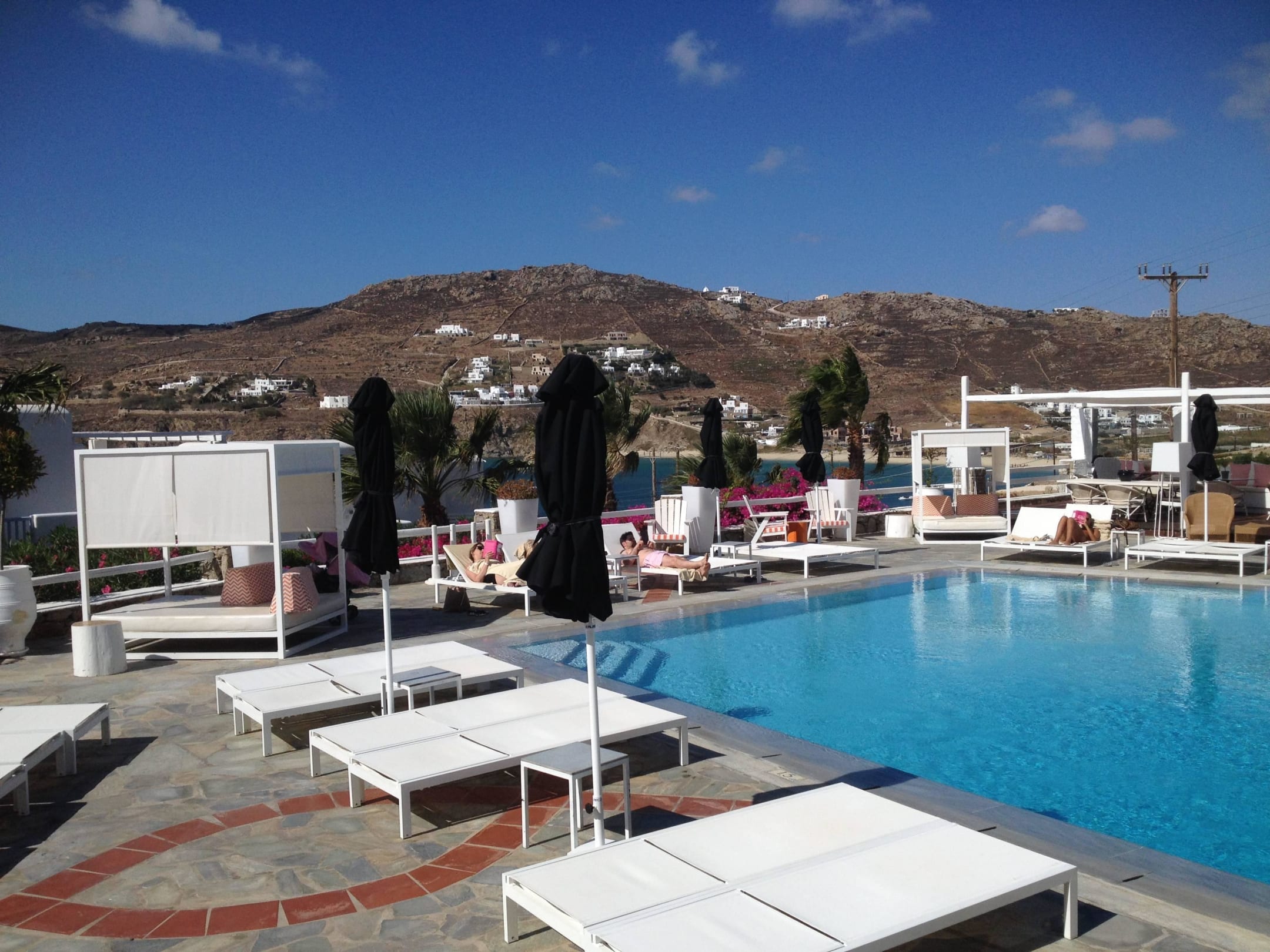 Blick von der Terrasse auf den Pool
