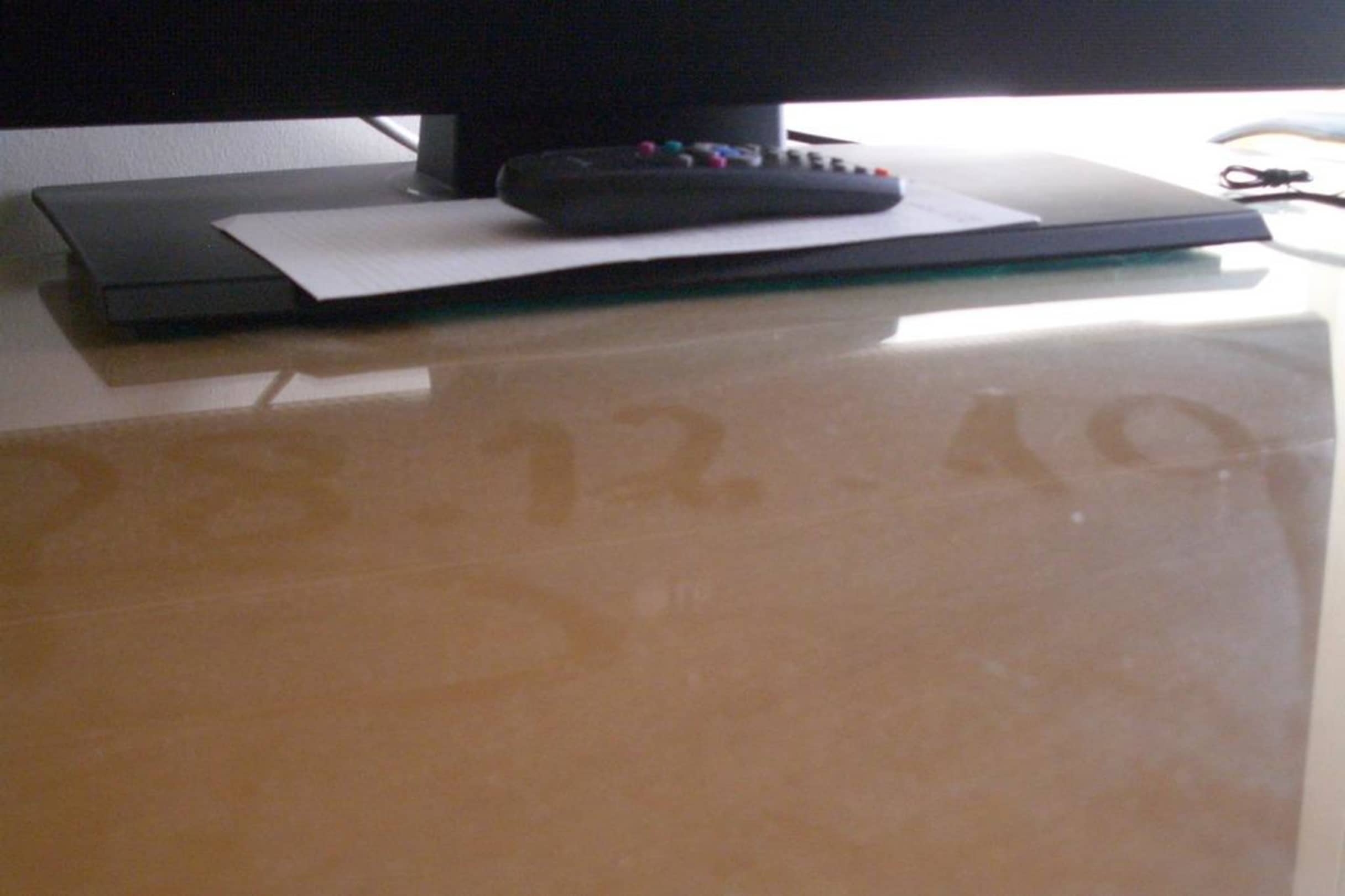 hier ist das Datum (28.12.10) in die Staubschicht auf den Tisch geschrieben. So wurde hier "Sauberkeit" bezeichnet und dies nicht nur auf den Tischen.
