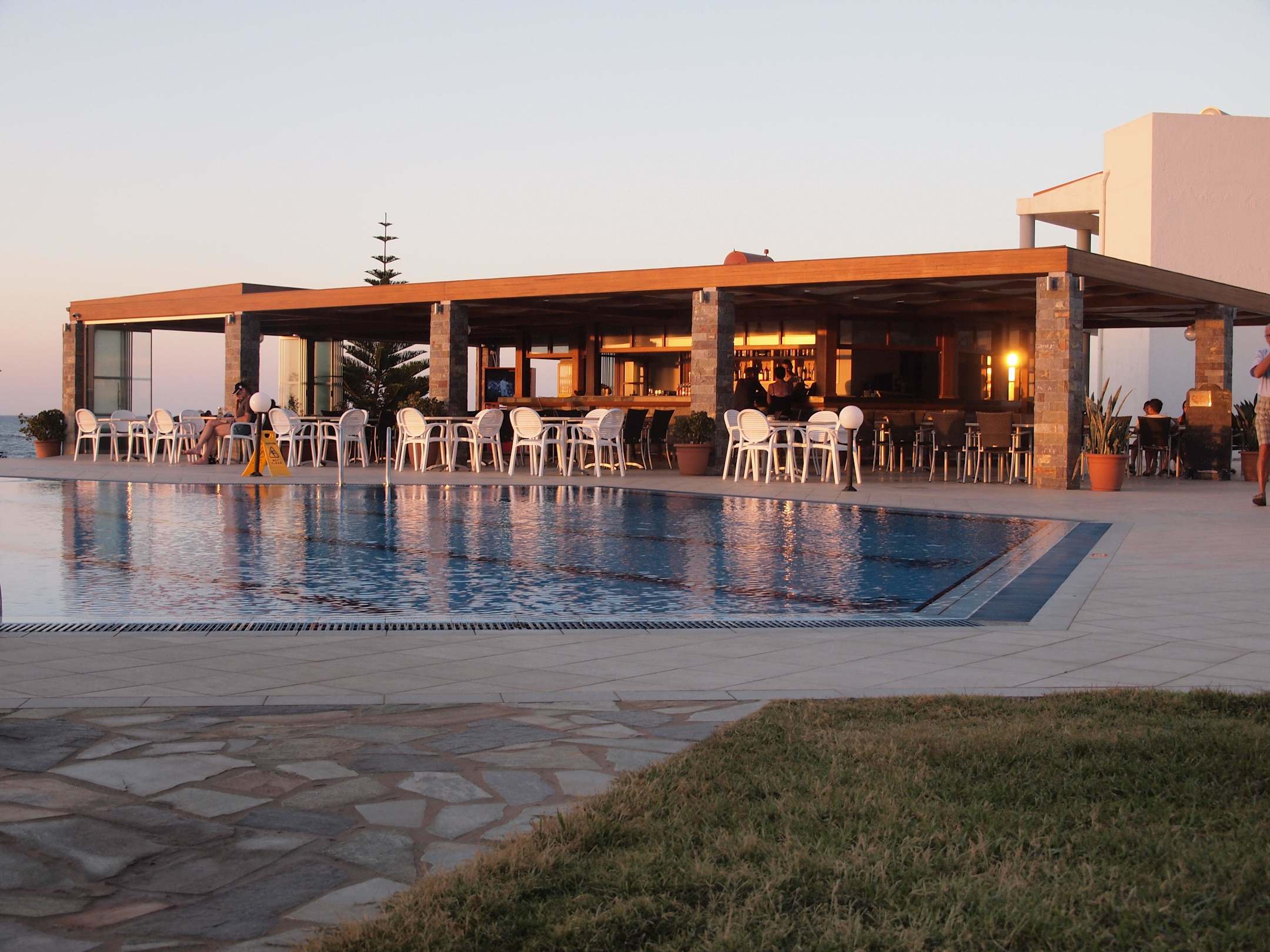Blick auf die Poolbar bei Sonnenuntergang