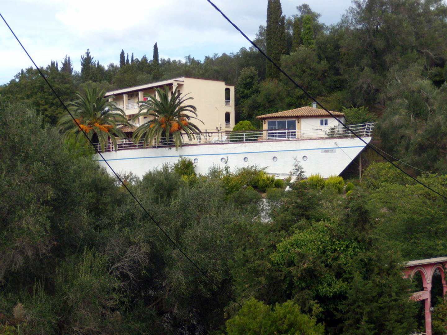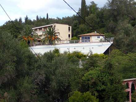 Das Hotelgebäude von der Straße aus gesehen. (Liapades-Korfu)
