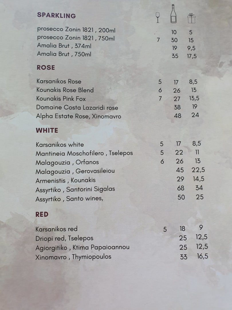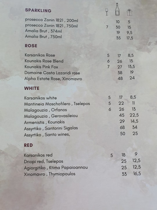 Weinkarte. Kleine aber Feine Weinkarte. Bei Bedarf Juniorchef Stathis fragen.