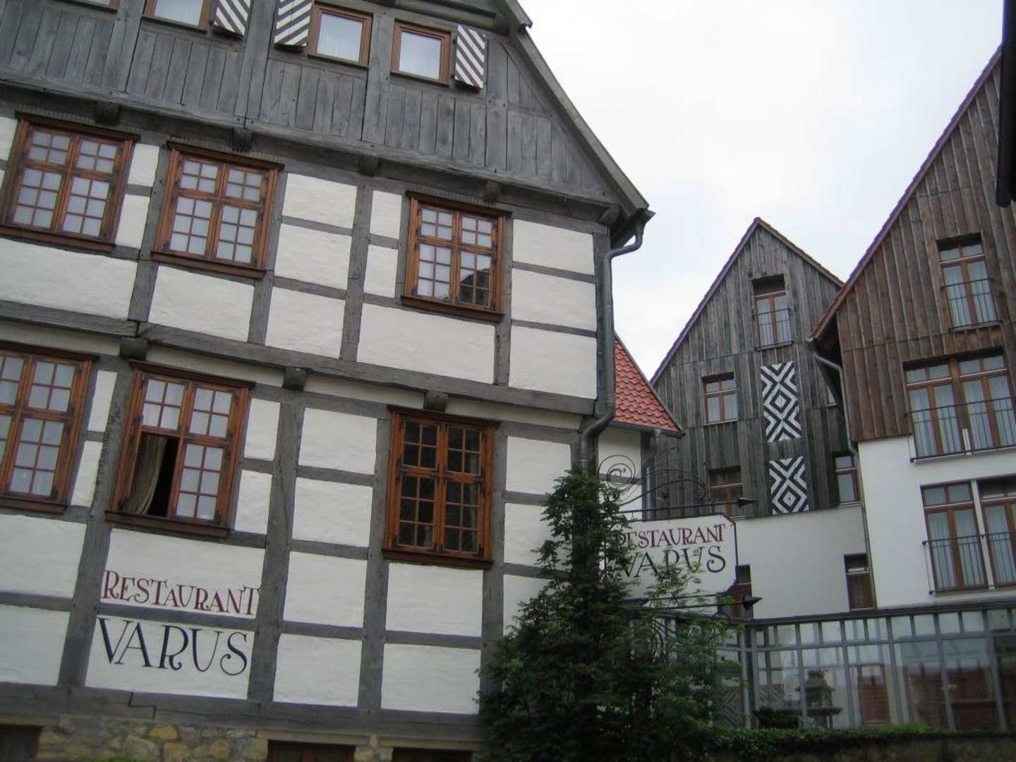 Das Hotel besteht aus mehreren Fachwerkhäusern.