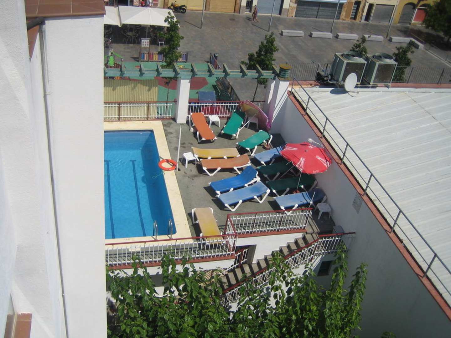 Sicht auf den Pool vom Dach des Hotels