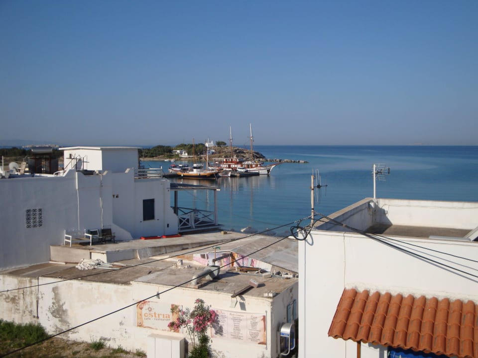 Blick vom Dach auf den kleinen Hafen