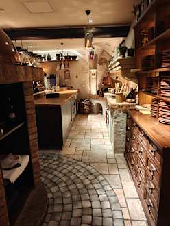 Küche unten im Gewölbekeller