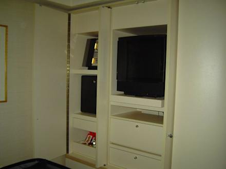 Leider konnte ich nicht herausfinden, wie man im Sitzen Fernsehen kann. Der TV ließ sich nämlich nur herausziehen, aber nicht drehen.