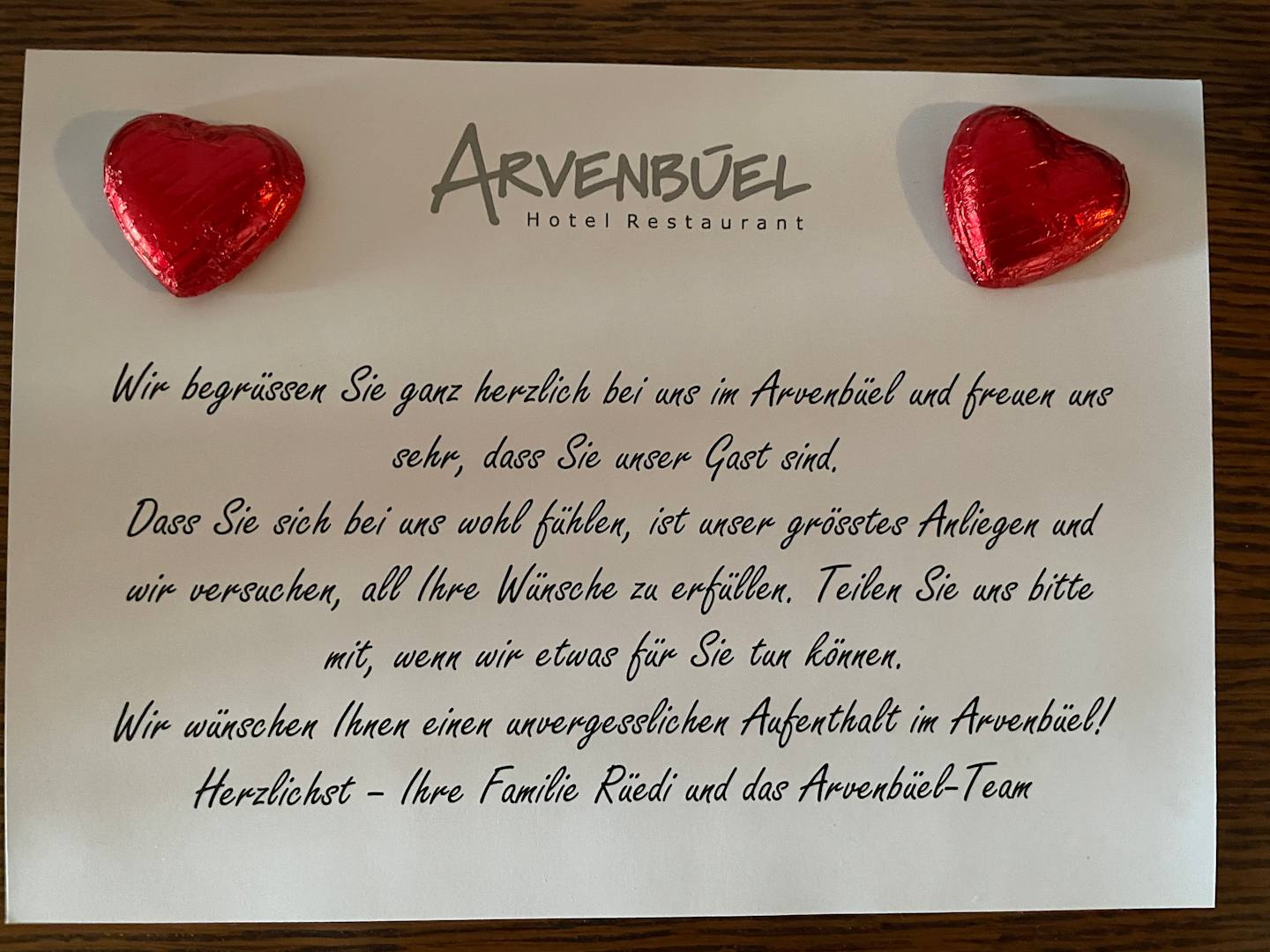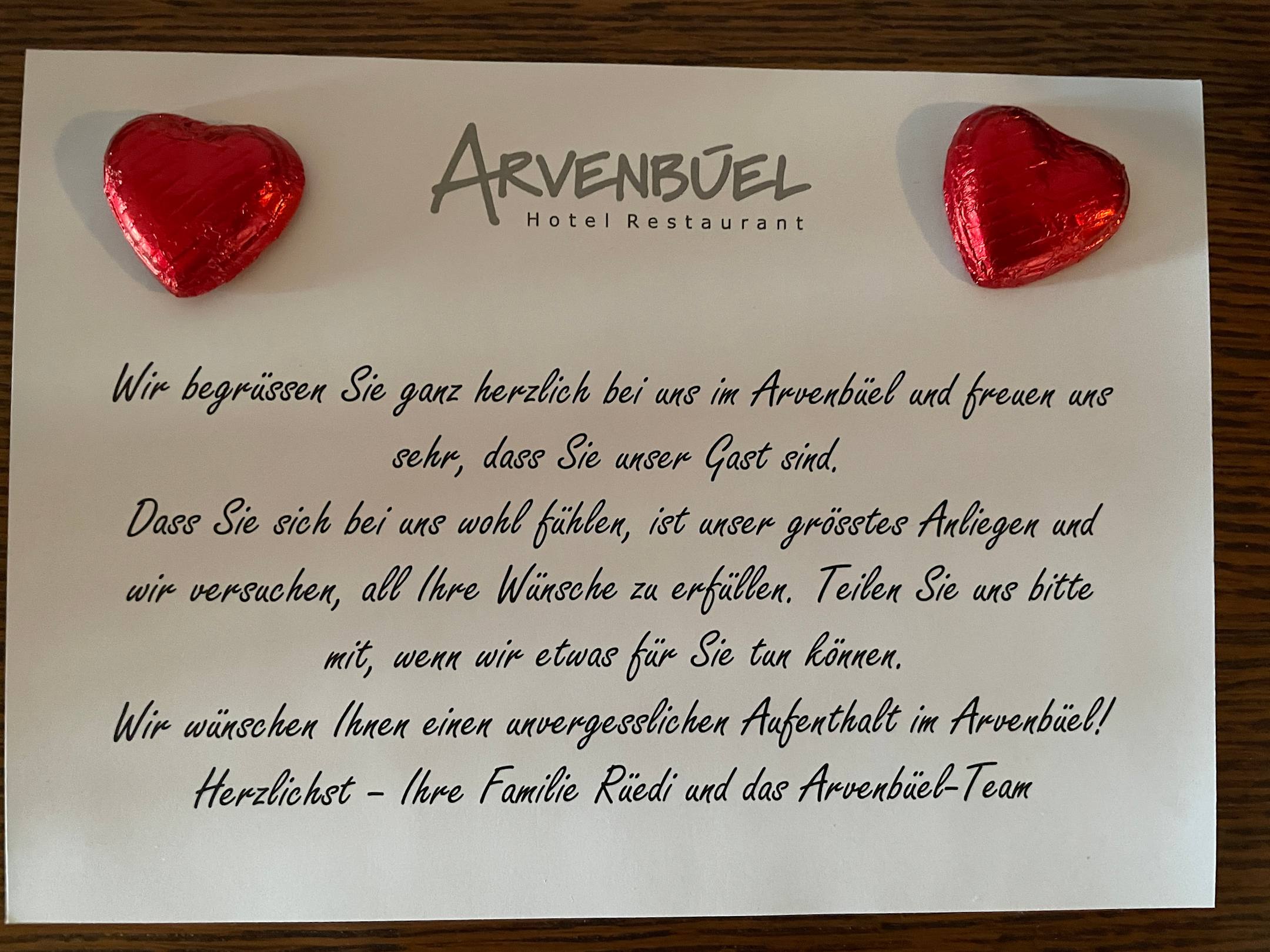 Herzliche Begrüssung im Zimmer 😊