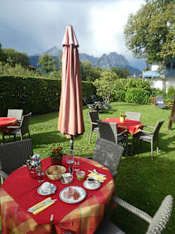 Frühstück auf der Terrasse bzw. im Garten