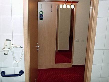 Blick aus dem Badezimmer auf die Spiegelwand