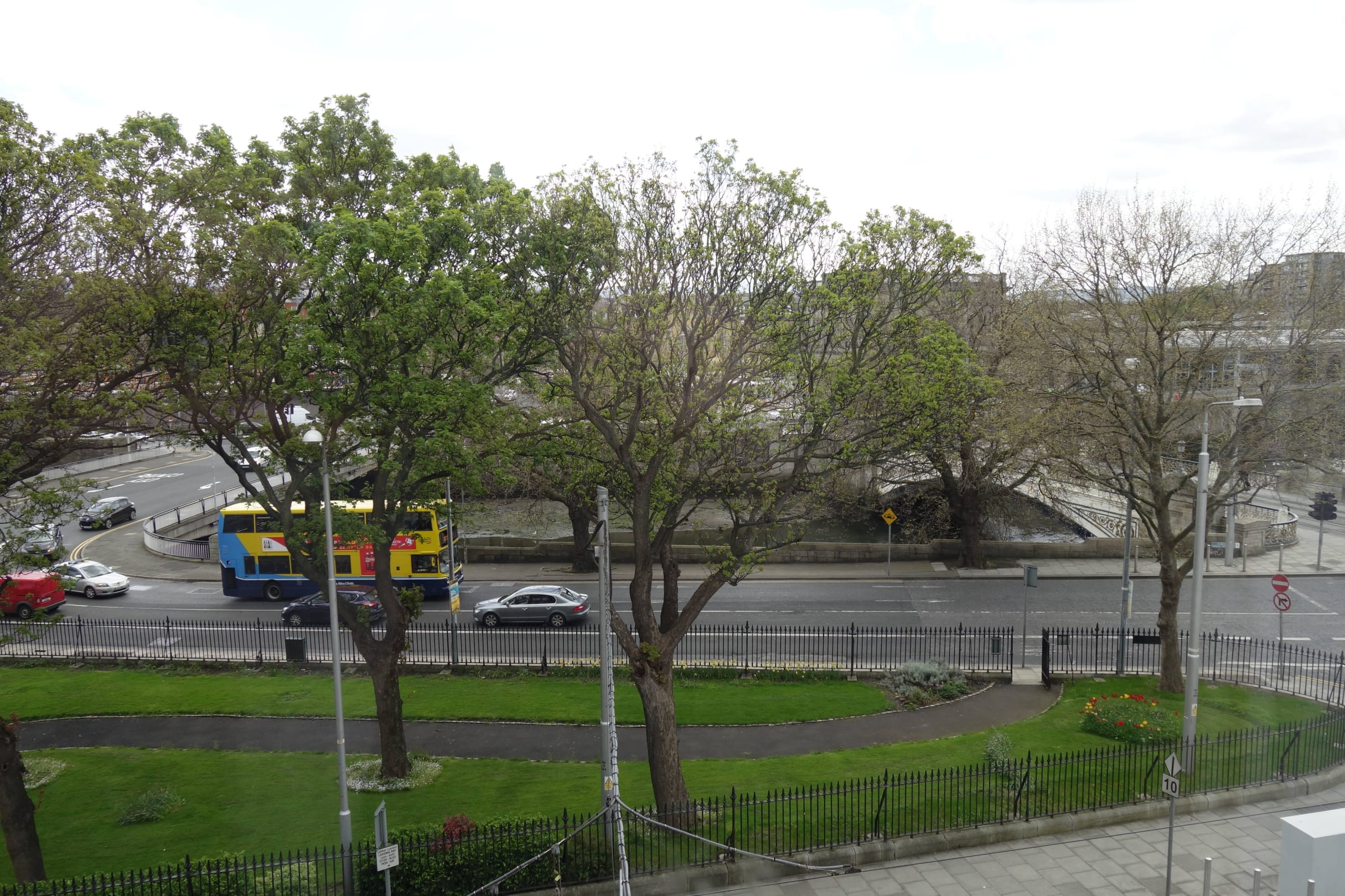 Ausblick aus Zimmer auf Straße und Liffey
