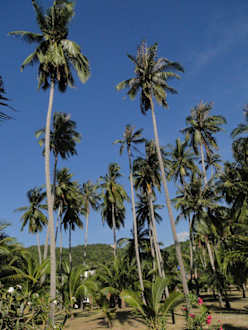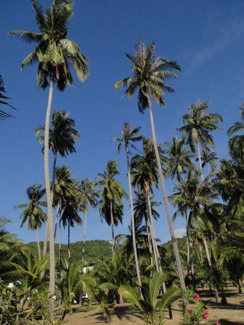 Riesige Palmen in der gepflegten Gartenanlage