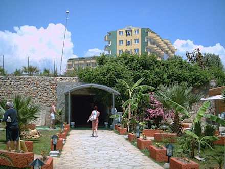 Vom Strand durch den Beachbar Garten und dem Tunnel unter der Hauptstr. zum Hotel.