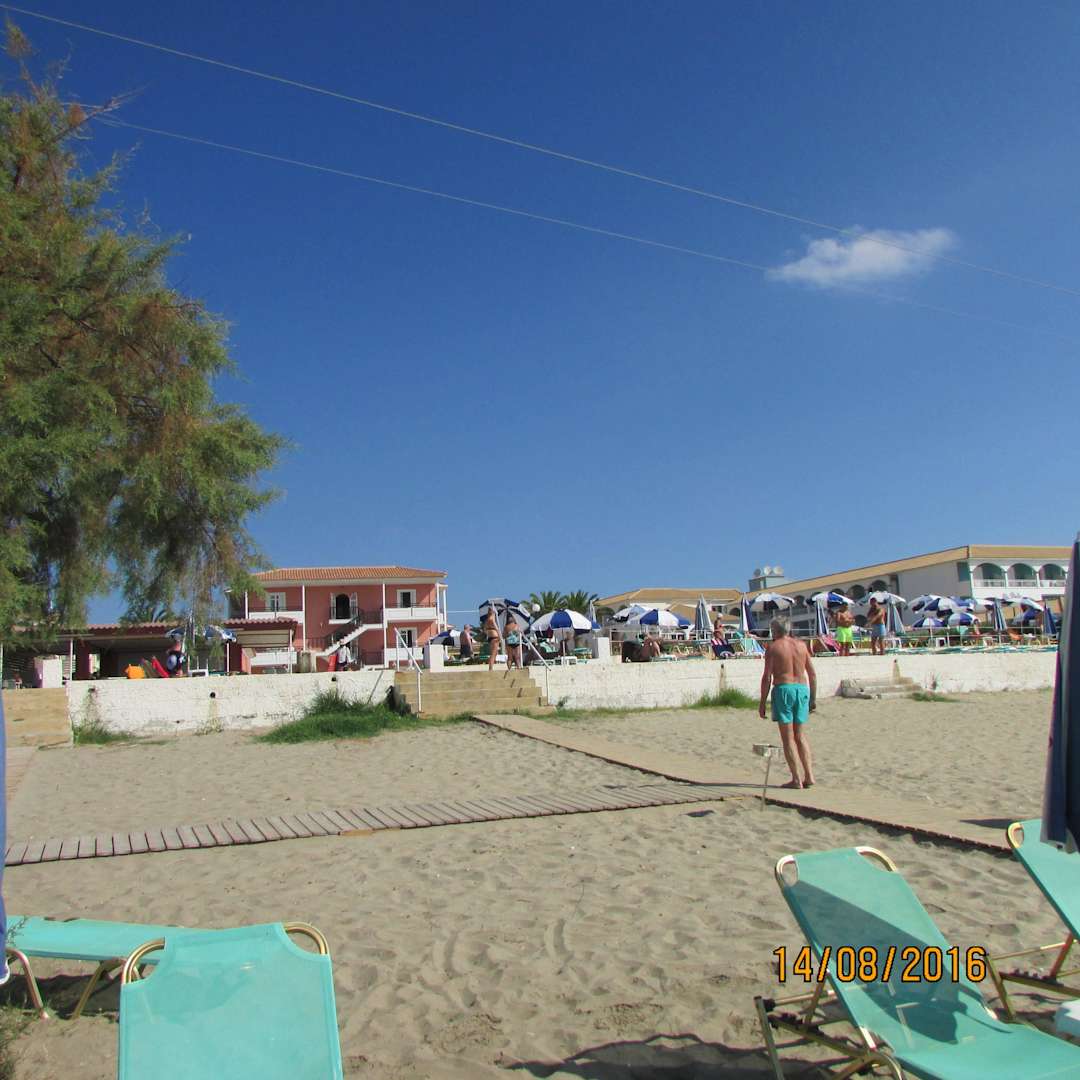 Blick vom Strand aufs Hotel Hotel Astir Beach