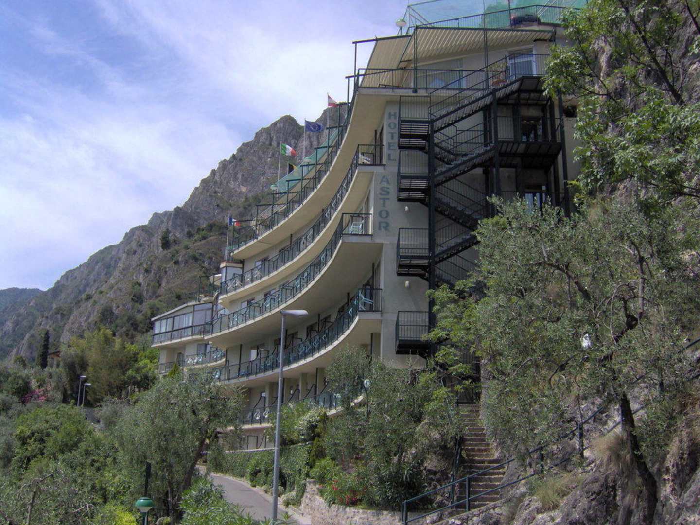 Hotel von der schmalen Zufahrtstraße (Fußweg nach Limone) aus gesehen