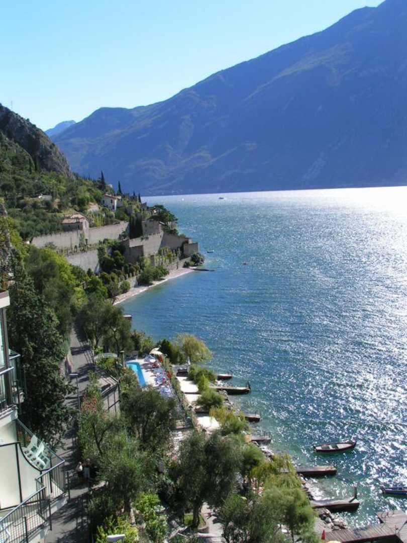 Blick vom Balkon auf den Hotelpool