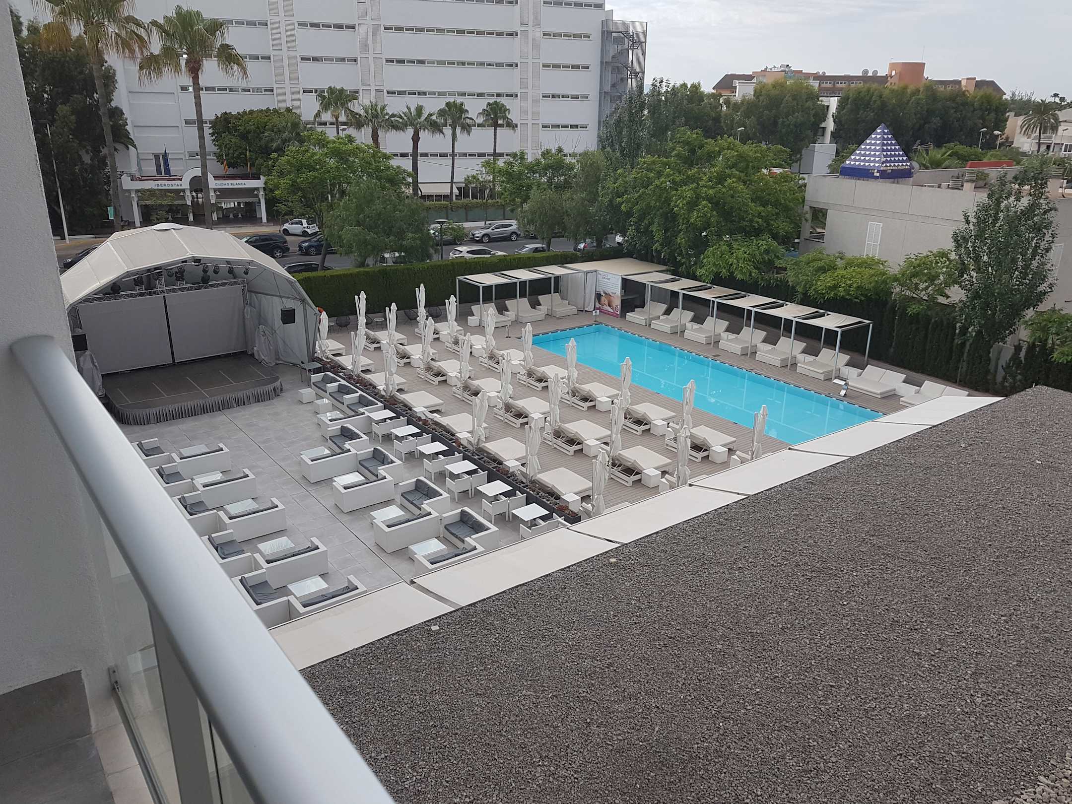 Vom Balkon zum ruhigen Pool.