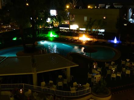 Pool bei Nacht vom Zimmer aus fotografiert