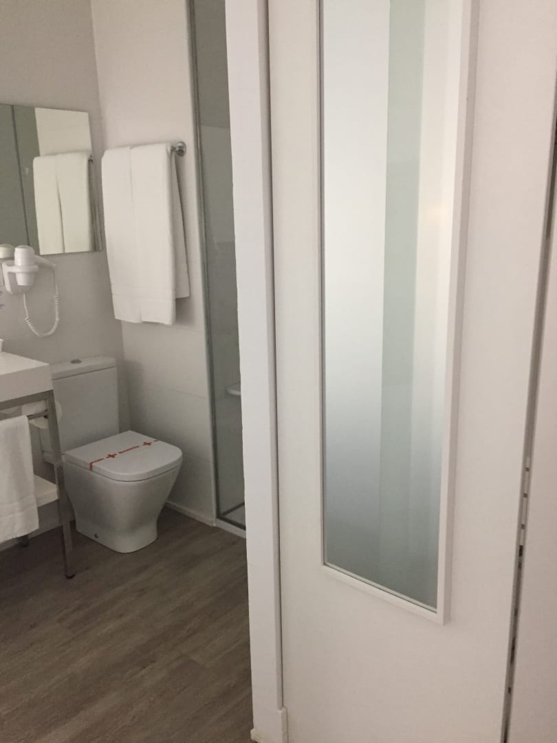 Bad mit Fön, Milchglastüre (also kein offenes Bad)