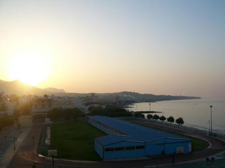 Blick auf den Sportplatz und das Meer