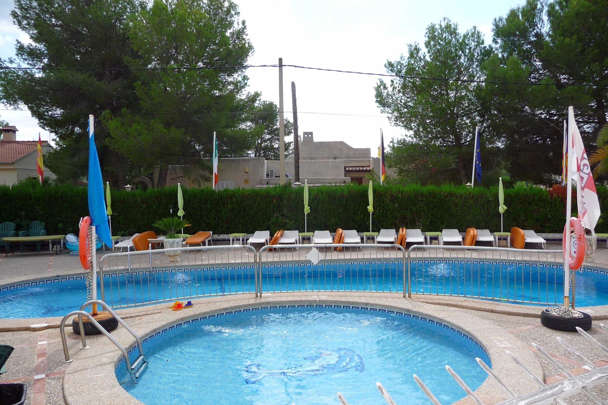 Blick von der Terrasse auf den Pool