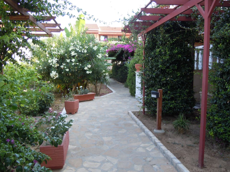 In Richtung Pool rechts Eingänge zu den Zimmern