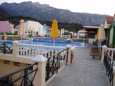 Dieses Bild zeigt den Blick auf den Hotelpool mit Bar.