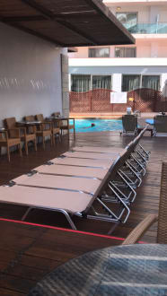 Die "Außengastronomie" mit Ausblick auf den kleinen Pool.
