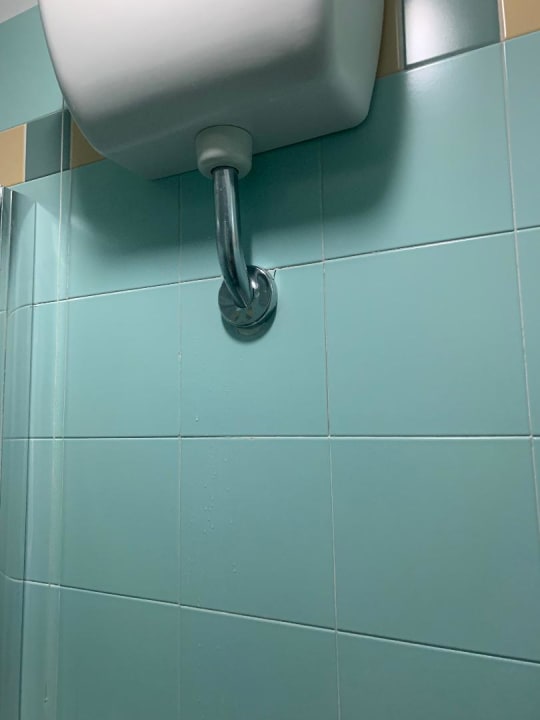 Toilettenspülung mit Wasser außen an den Fliesen