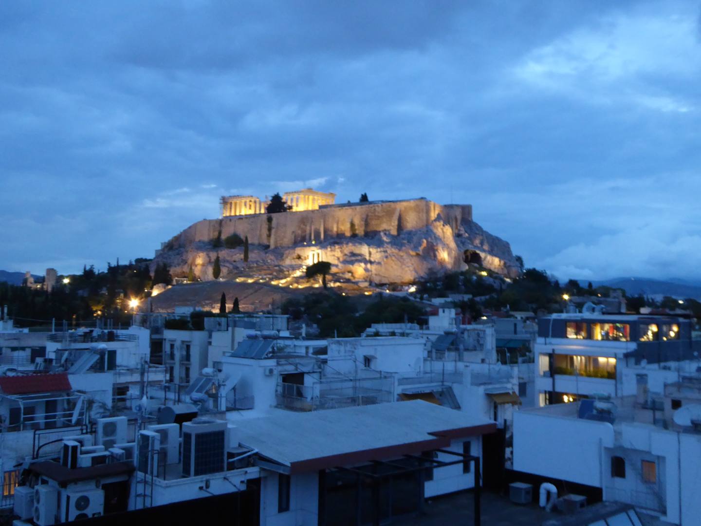 vom Dachgarten zur Akropolis, abends