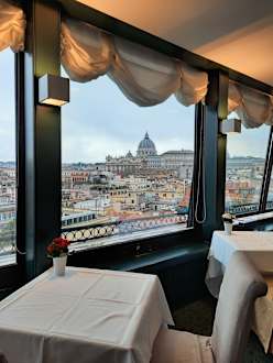 GastroAuch vom Restaurant hat man freien Blick auf den Vatikan. Das Frühstück ist lecker, Abends hat uns der Menüpreis leider abgehalten.