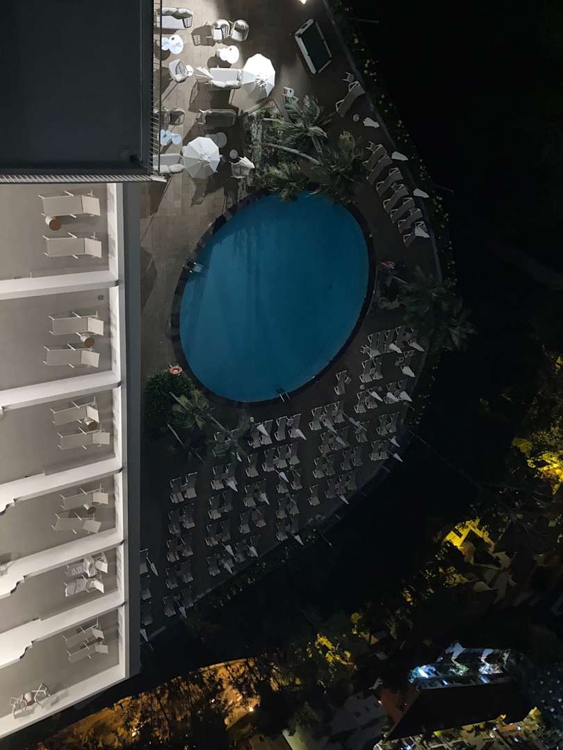 Blick vom Dach auf den Pool