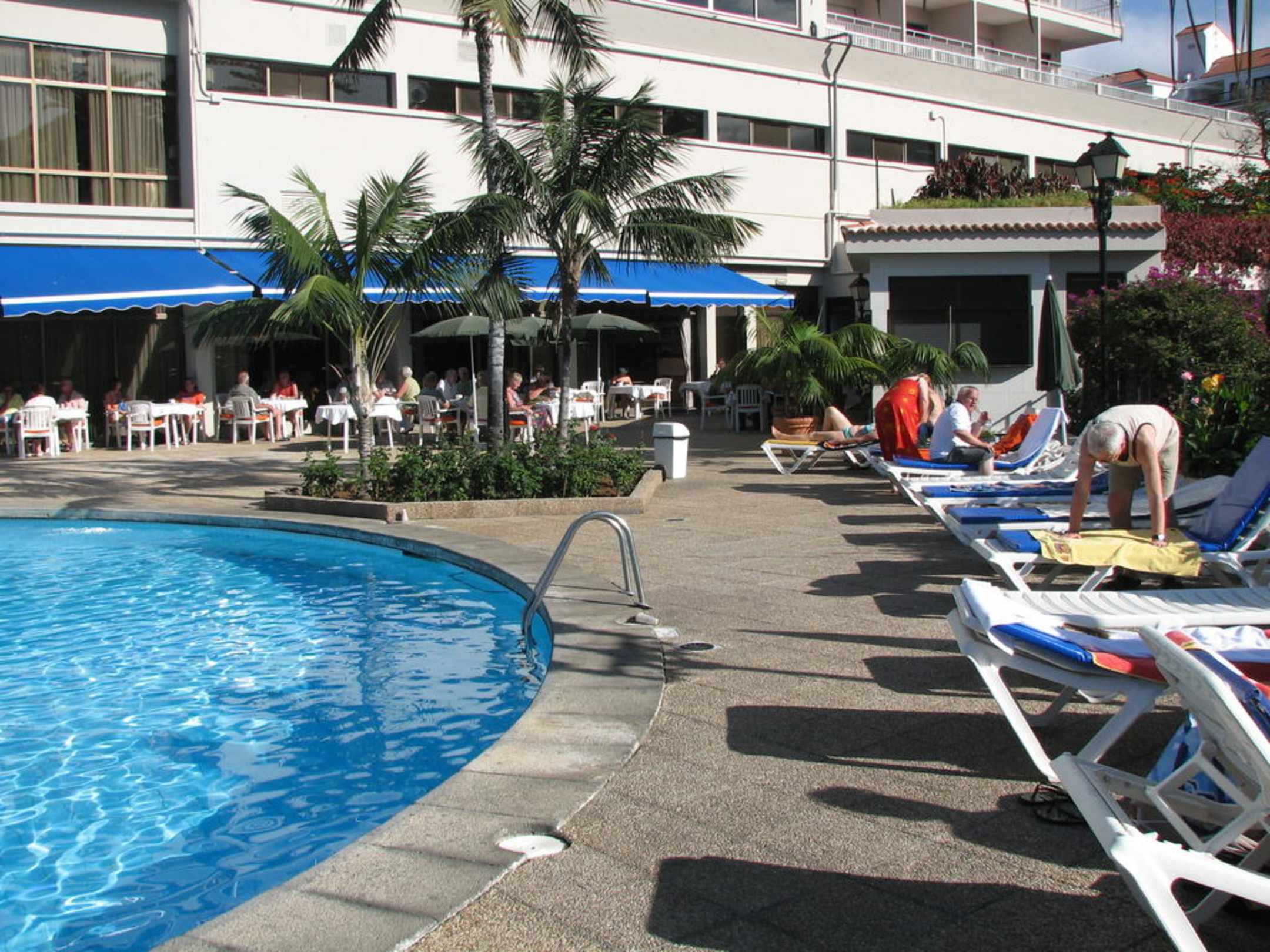 Nochmals eine Poolaufnahme vom Januar 2010.Sonne und Wärme satt.Nicht reservierte Liegen.Der Bademeister bringt die Auflagen für die Liegen und die Sonnenschirme.Nur die Badetücher kosten 6,00 Euro Pfand.