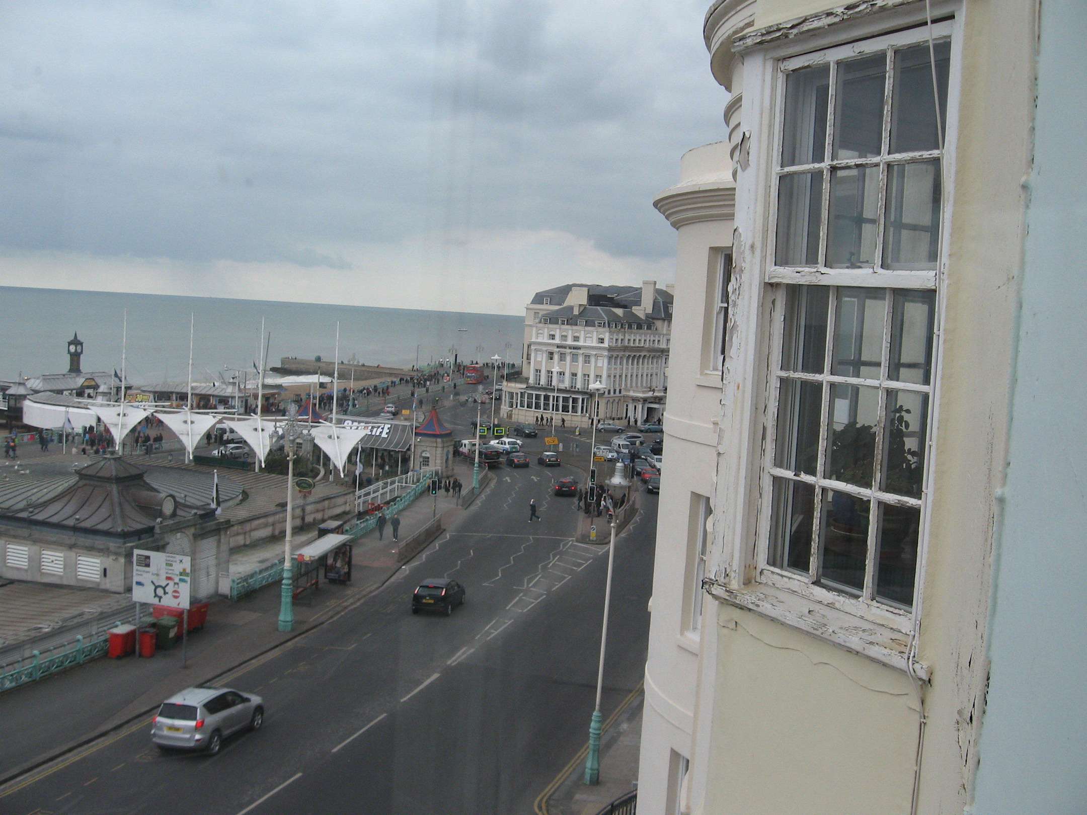 Blick aus dem obersten Doppelbettzimmer Richtung Meer und Innenstadt. An dieser Hauptstrasse befinden sich Bushaltestellen, von wo aus man in ca.1 Std. in die Nachbarstadt Eastbourne kommt.