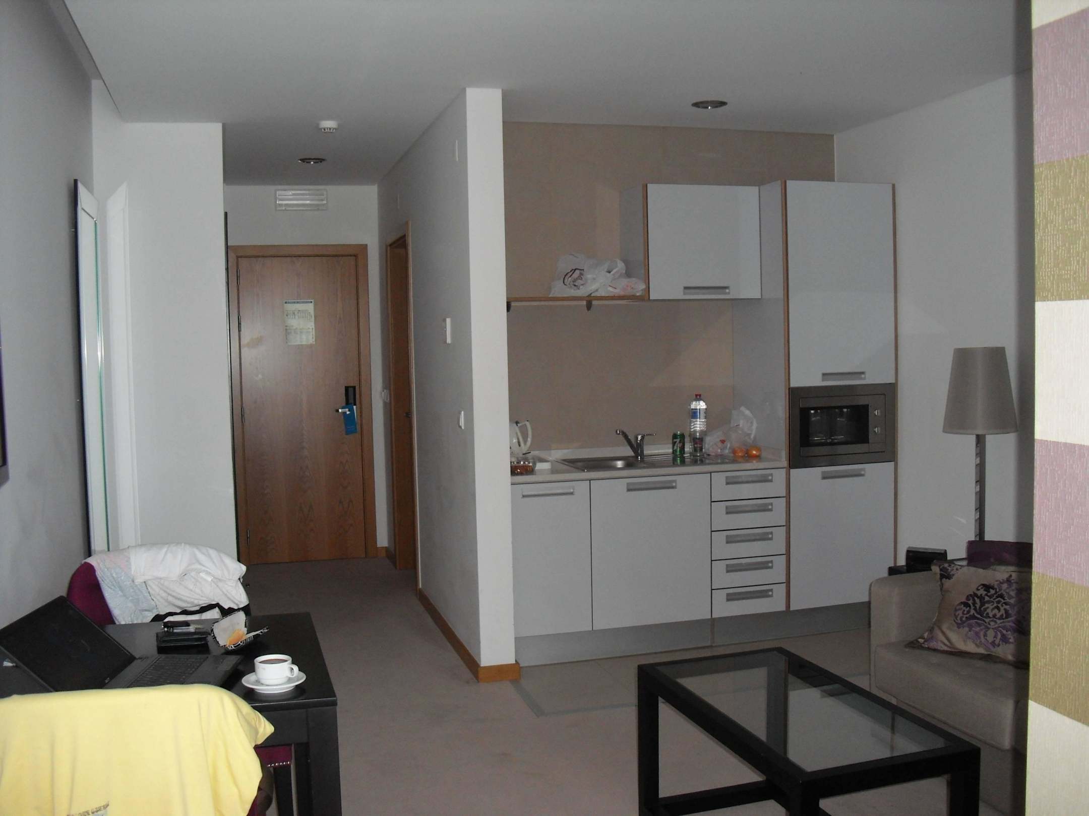 Vom Bett aus zur Küche und Bad