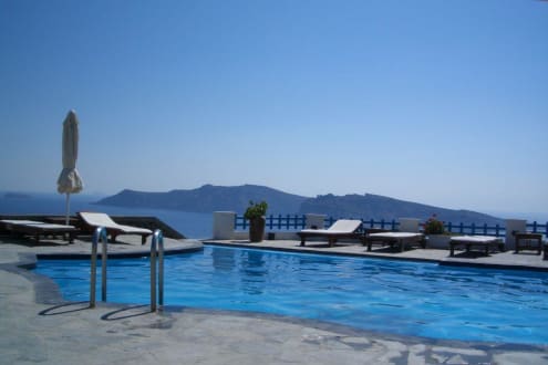 Sie sehen hier den Pool des Volcano's Villas. mit einem einzigartigem Ausblick.