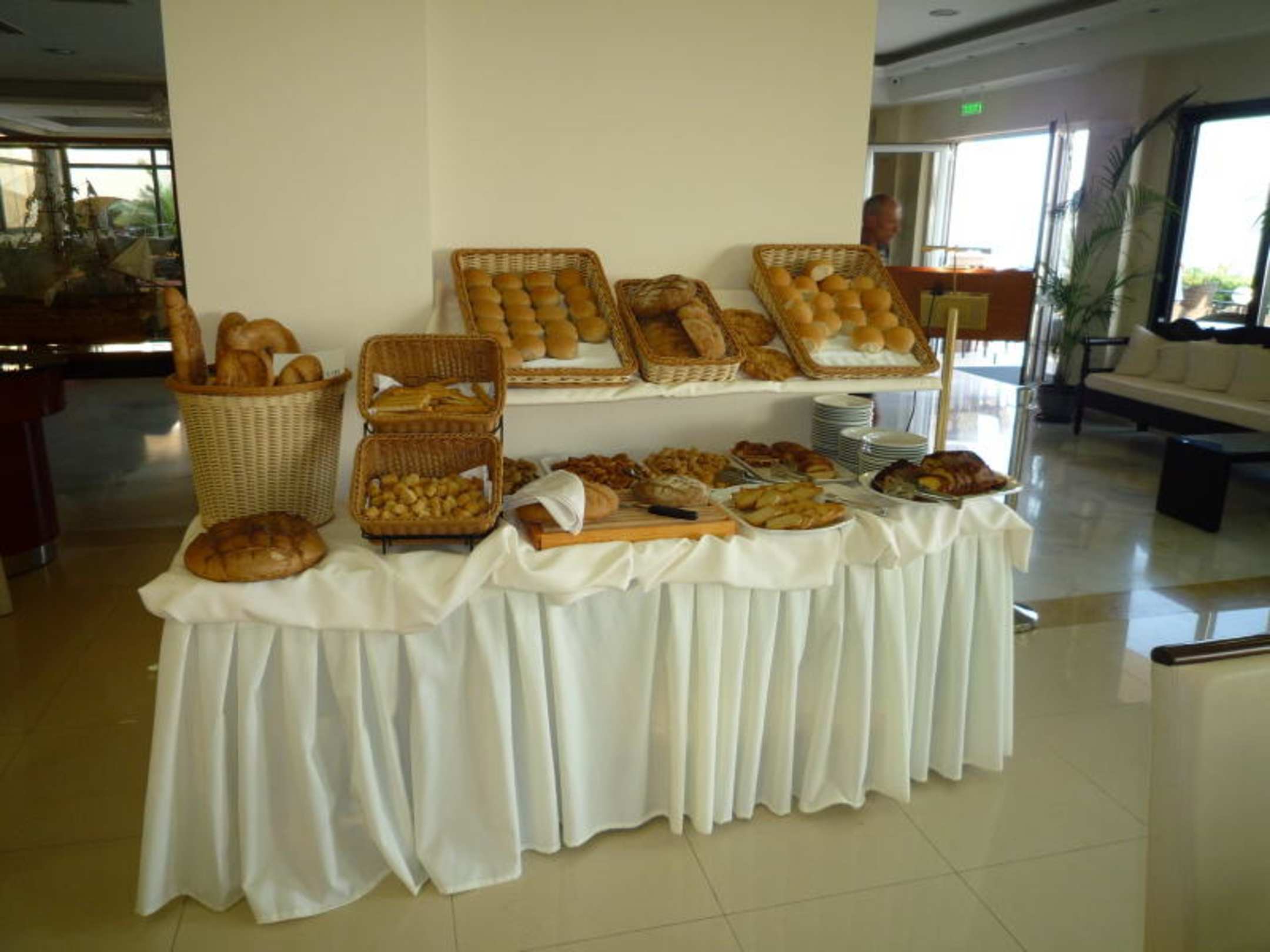 Die Brotauswahl ist für grichische Verhältnisse recht ordentlich, allerdings jeden Tag das gleiche Standard-Sortiment. Für ein 4-Sterne Haus dürfte es jedoch etwas mehr sein...