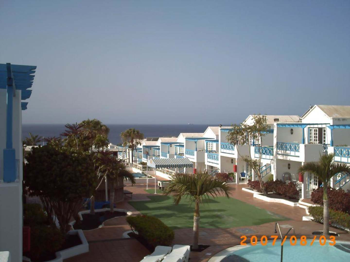 Blick aus dem Apartment im oberen Bereich mit Balkon.