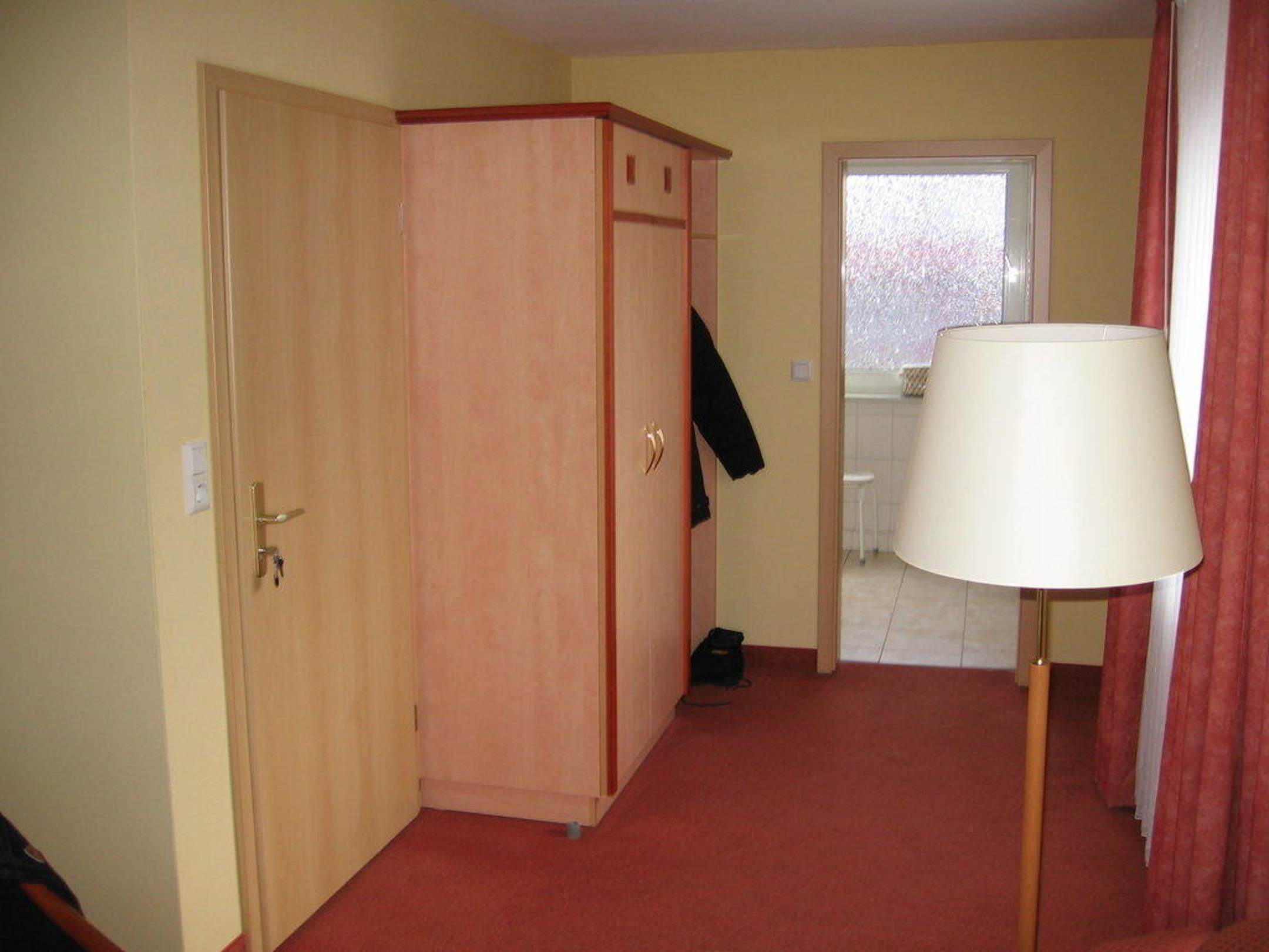 Eingangstür mit Schrank und zugang zum Bad