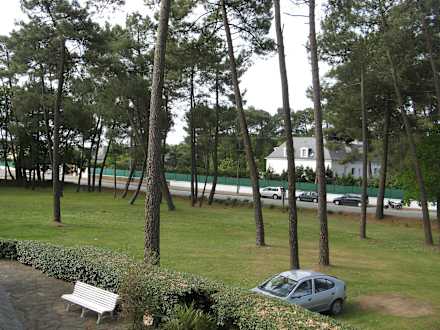Fensterausblick auf den Hotelgarten vor dem Haus