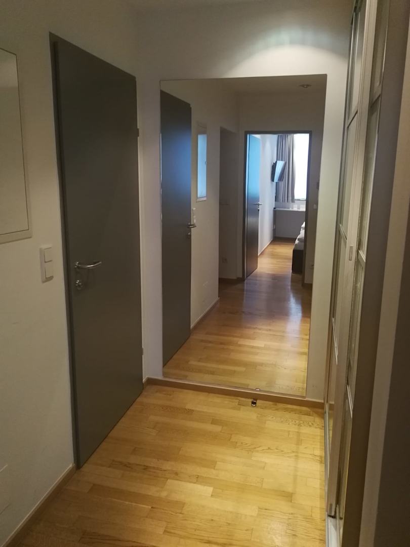 Seitenbereich im Flur mit großzügig dimensioniertem Schwebetürenschrank