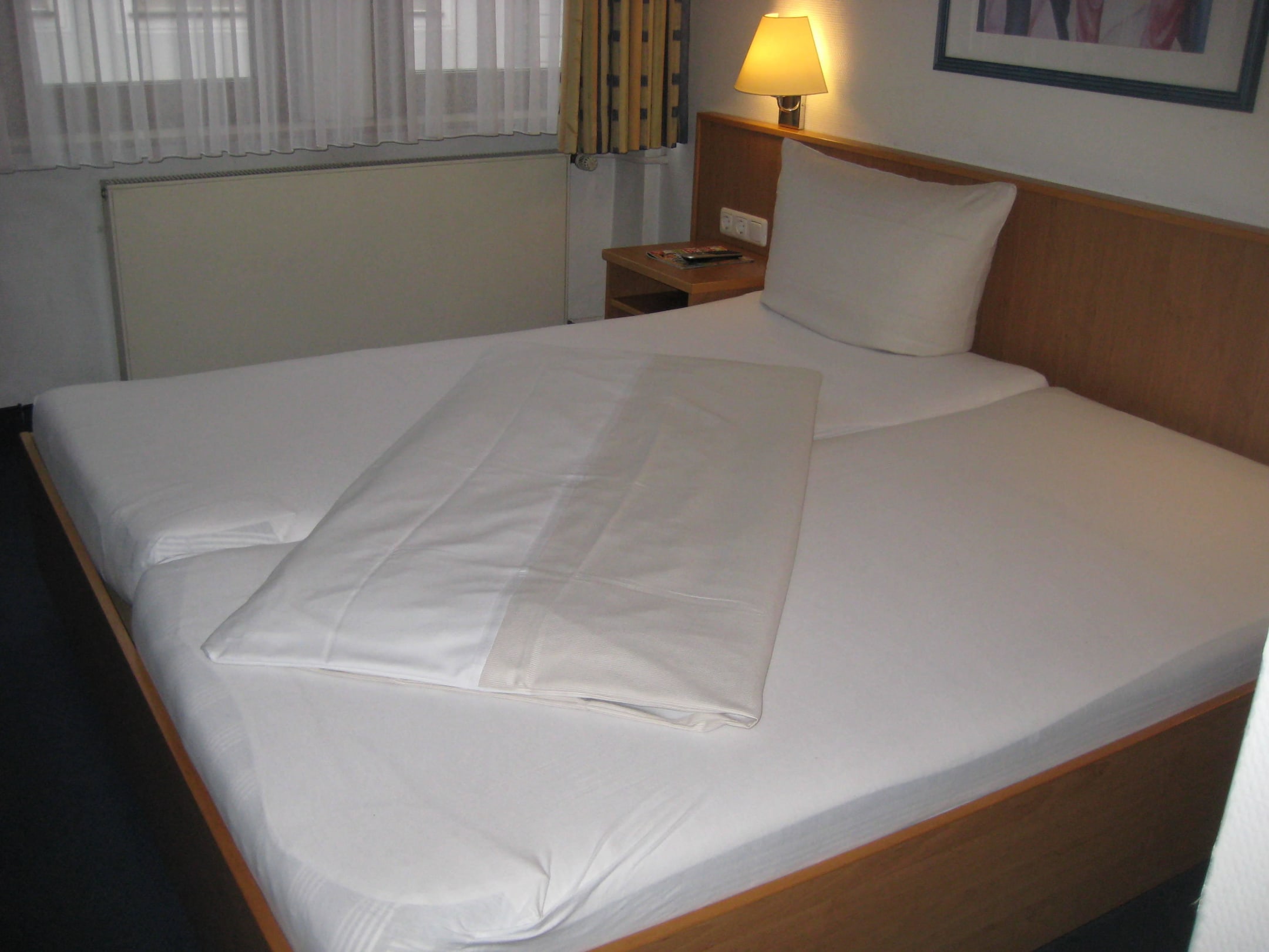 Das Doppelbett (zwei Matratzen) - zur Alleinnutzung hergerichtet