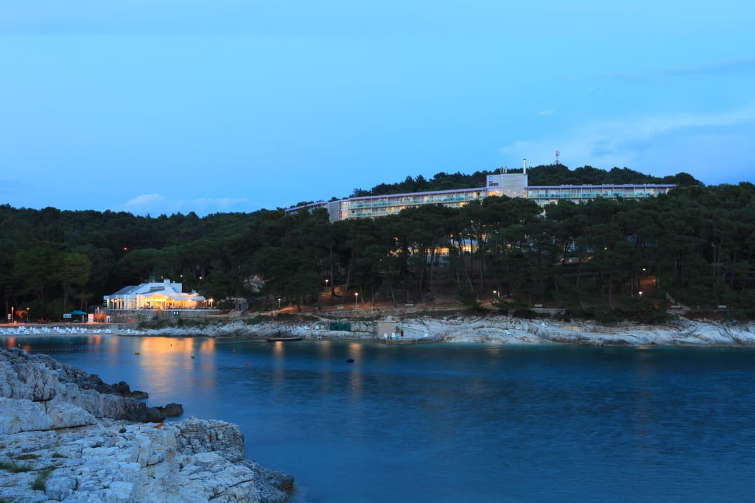 Das Hotel und das Restaurant Veli Zal von der Badebucht aus gesehen.