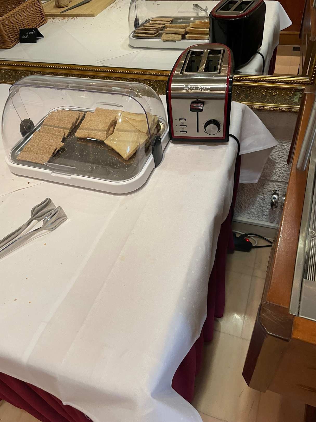 Das Brot war alt aber wenigstens lag eine Zange bereit.